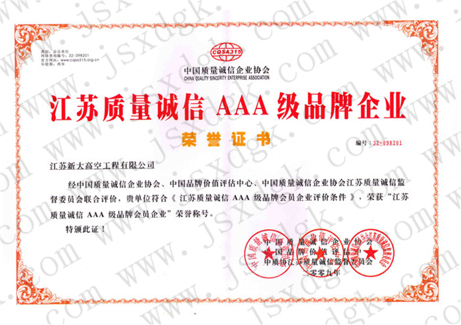 江蘇省高空行業(yè)五十強(qiáng)行業(yè)證書